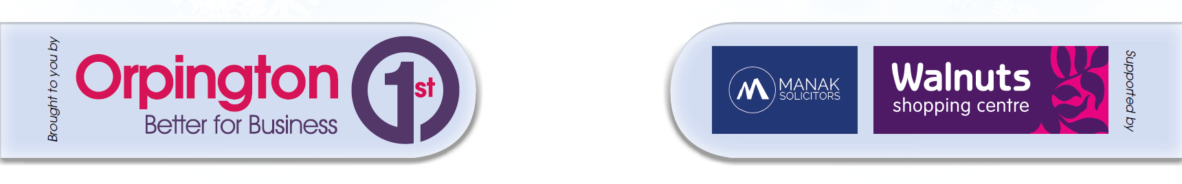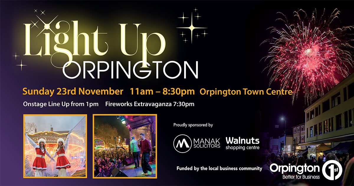 Brought to you by Orpington 1st - the town centre business community - and supported by Manak Solicitors and The Walnuts Shopping Centre.